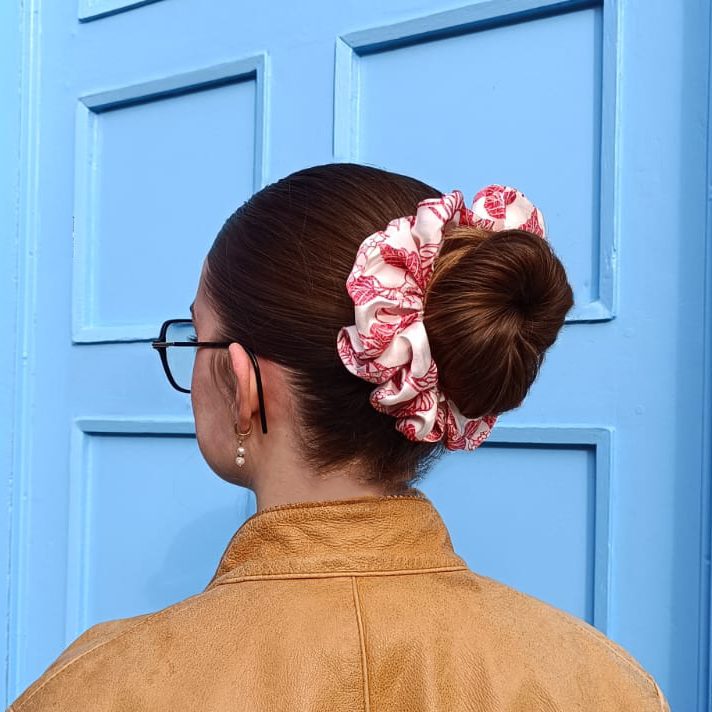 Doté d’un élastique discret d’environ 20 cm de diamètre, il assure un ajustement optimal et agréable. Sa taille équilibrée le rend facile à porter au quotidien comme lors d’occasions plus habillées. Élégant et délicat, ce chouchou en soie imprimée apporte une note florale et sophistiquée à toutes vos tenues.