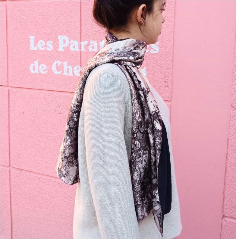 Confectionnée en soie naturelle, cette étole procure également de véritables bienfaits pour le corps. Naturellement douce, légère et respirante, la soie enveloppe la peau avec délicatesse, limite les frottements et procure une sensation de confort durable. Thermorégulatrice, elle offre chaleur ou fraîcheur selon les saisons, tout en assurant un toucher soyeux et un tombé aérien qui accompagne la silhouette avec fluidité et grâce.